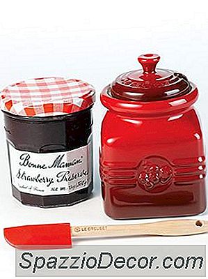 이 고전적인 프랑스 confiture를 조정 실리콘 스프레더 크기의 노치가있는 석기 용기에 제공하십시오.
